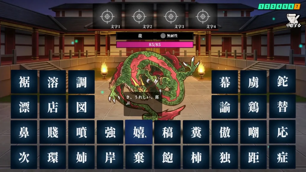 上記でも記載しましたが語の並びよりも、各漢字に設定された強弱が与える影響が大きく、結局は“強い字を引けるか”の比重が高いと感じる場面があり、この点は人を選びます。演出面では解説の文字送りが遅く、テンポが削がれる感がありました。